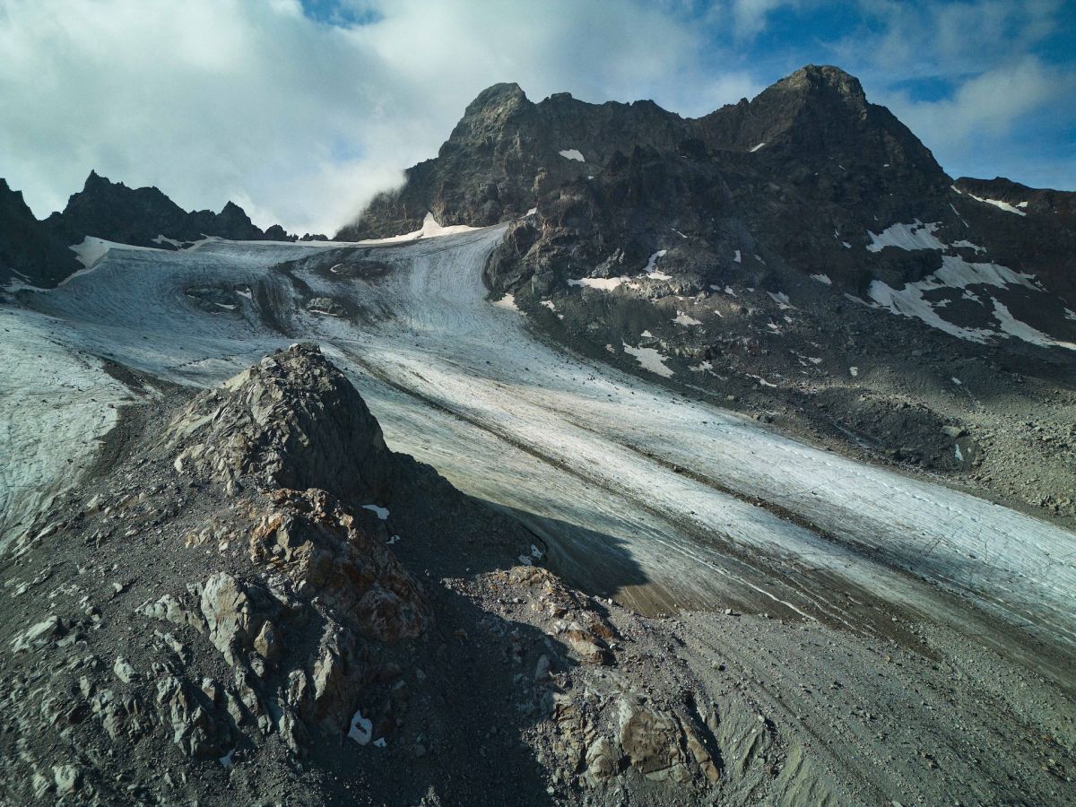 Gletscher sind nicht nur Bestandteile unserer Gebirgslandschaften, sie haben diese mitgestaltet. Durch ihr Gewicht und ihre Fliessbewegung können sie Gestein abschleifen, zerbrechen, transportieren und an anderer Stelle wieder ablagern. Einen Teil des Gerölls schieben die Gletscher vor sich her (Haag 2015). Zieht sich der Gletscher zurück, bleibt es in Form langgestreckter Wälle und Kämme liegen. Diese werden als End- und Seitenmoränen bezeichnet und zeigen uns, bis wohin die Gletscher um 1850 reichten. Fachleute wie Mary Leibundgut können diese Strukturen in der Landschaft nachvollziehen und so die einstigen Ausmasse des Gletschers beziehungsweise die Grösse des Gletschervorfelds erkennen. Am Porchabella-Gletscher sind diese Strukturen besonders gut ausgeprägt.