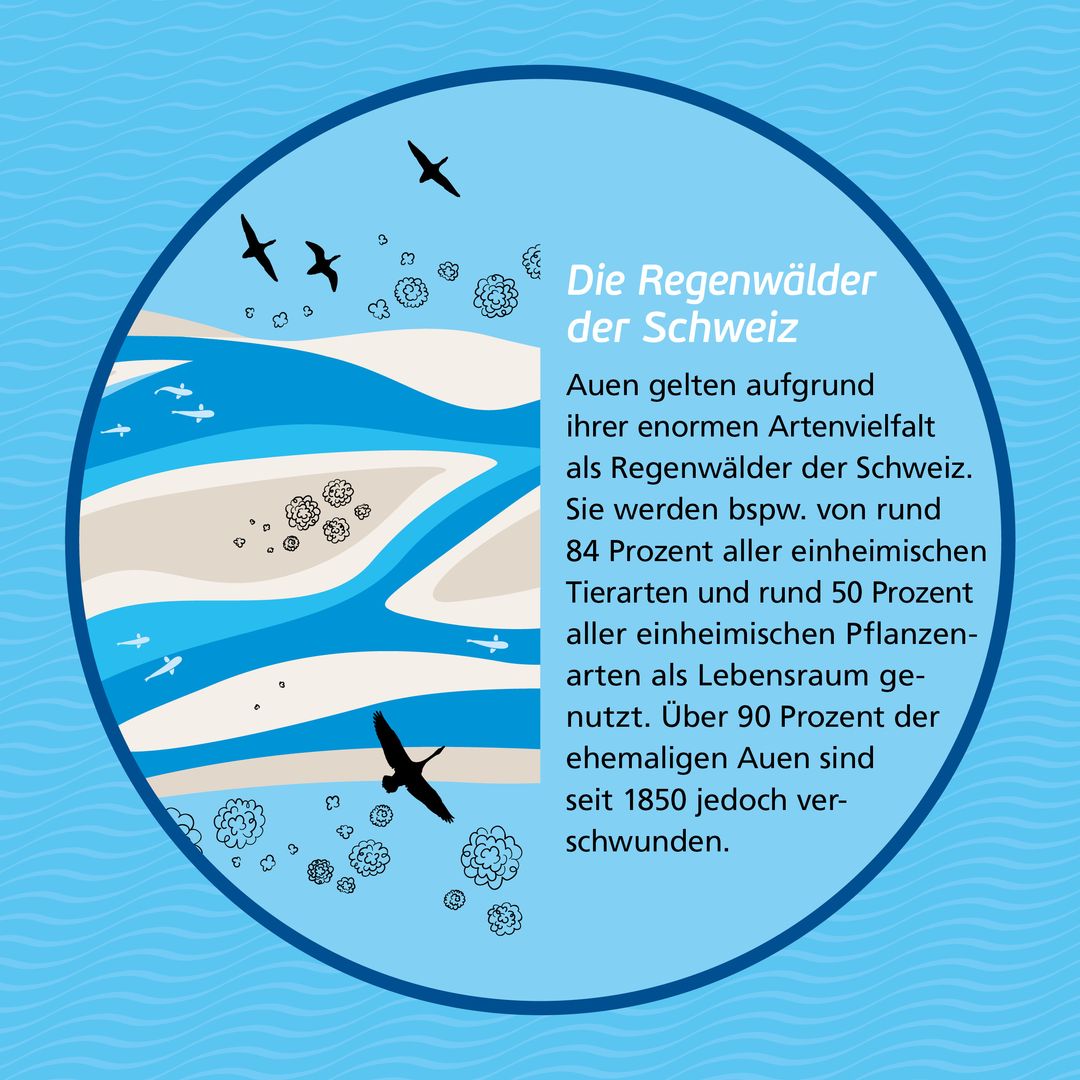 Über 80 Prozent der bekannten 45 000 Tier- und Pflanzenarten der Schweiz kommen in Gewässern und direkt anliegenden Gewässerräumen vor - ein wahrer Hotspot der Artenvielfalt und für uns Menschen unendlich wertvoll: Biodiversität inspiriert, schütz, ernährt und macht glücklich. Doch bei allem was die Natur uns gibt, braucht sie auch unsere Hilfe. Nur noch fünf Prozent des Schweizer Gewässernetzes gilt als intakt. Die Schweiz hat  weltweit die vierthöchste Zahl an ausgestorbenen Fischarten und viele Arten gelten als bedroht.