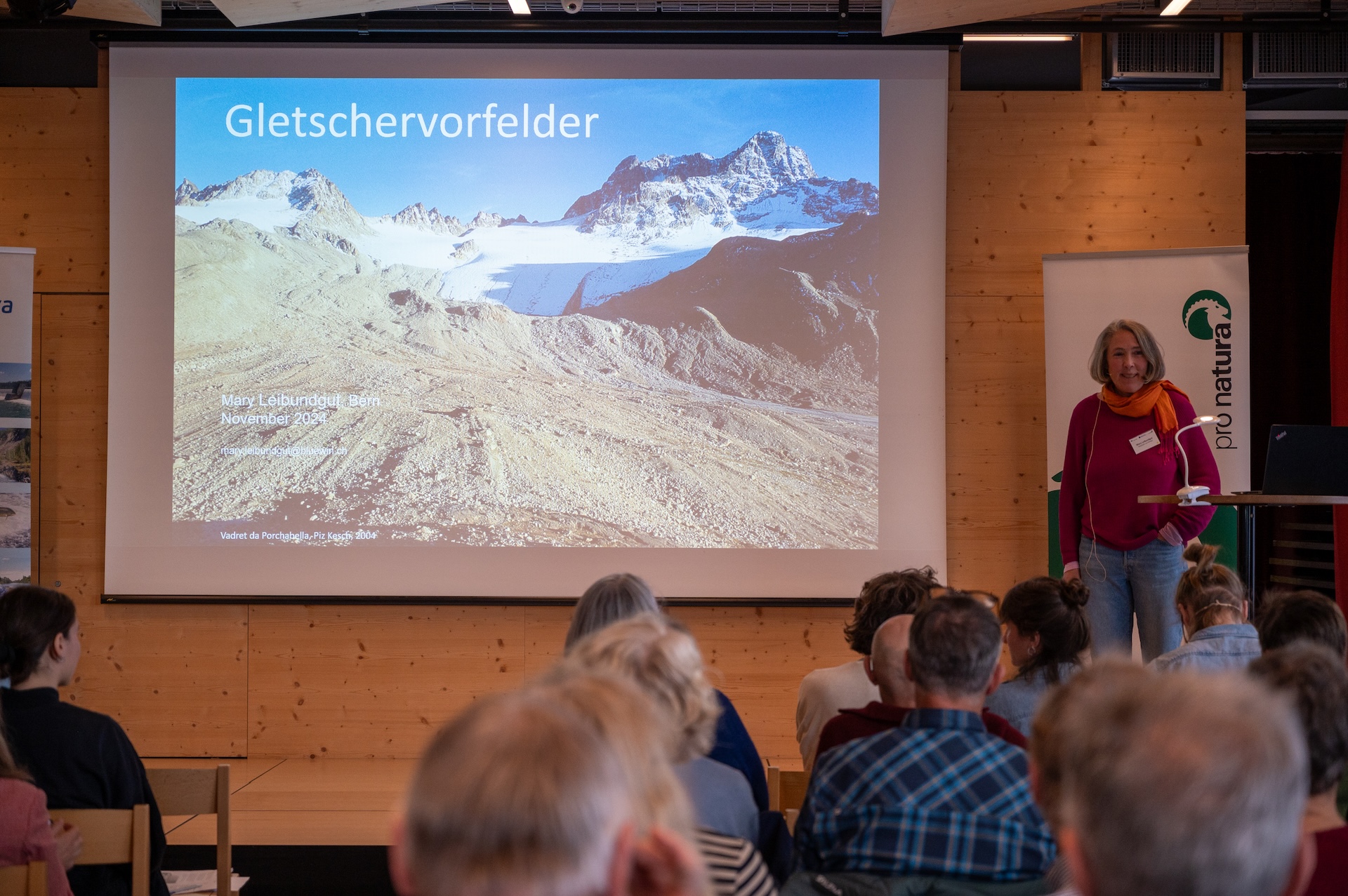 Mary Leibundgut, Geografin und Biologin, beleuchtete beispielsweise die durch den Gletscherrückgang ausgelösten geologischen und hydrologischen Prozesse und zeigte, wie die natürliche Dynamik dieser Gebiete zu einem einzigartigen Mosaik an Lebensräumen führt. Ein starkes Plädoyer dafür, warum die ungestörte Entwicklung der Gletschervorfelder langfristig einen grösseren ökologischen und gesellschaftlichen Nutzen bieten könnte als ihre technische Nutzung.