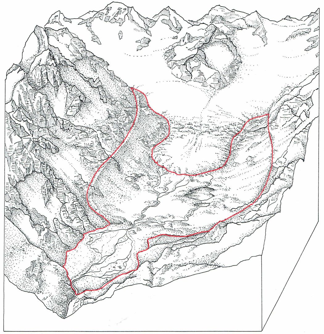 Während dem Höhepunkt der letzten Eiszeit vor rund 24'000 Jahren war ein grosser Teil des schweizerischen Mittellands von den Eismassen von Rhone-, Aare und Rheingletscher bedeckt. Wo sich heute intensiv genutztes Siedlungs- und Landwirtschaftsgebiet ausbreitet, lagen karge Geröll- und Tundraflächen, wie wir sie heute aus dem Alpenraum oder der Arktis kennen. Wenn in der Schweiz von Gletschervorfeldern die Rede ist, sind allerdings jene Flächen gemeint, die seit der letzten kleinen Eiszeit um 1850 eisfrei geworden sind und die heute im Zuge der Klimaerwärmung rasant an Fläche gewinnen.